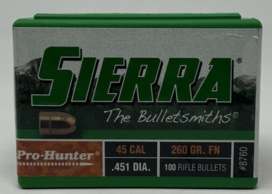 Sierra 45 Cal (.451 Dia) Reloading Bullets Pro Hunter SRAA8760 260 Grain Flat Nose 100 Pieces